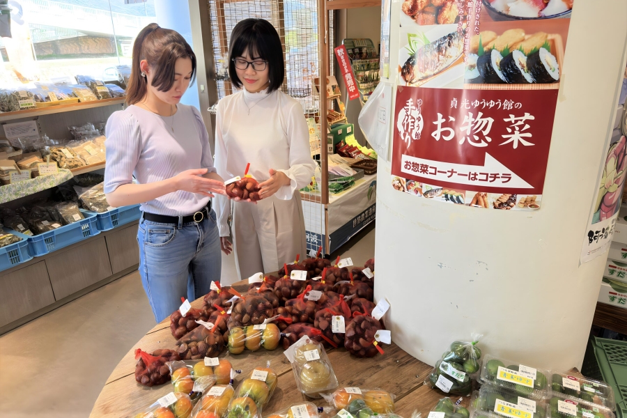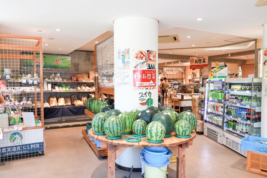 物産館さんちょく市では、地元農家さんが丹精込めたお手製の特産品が多…